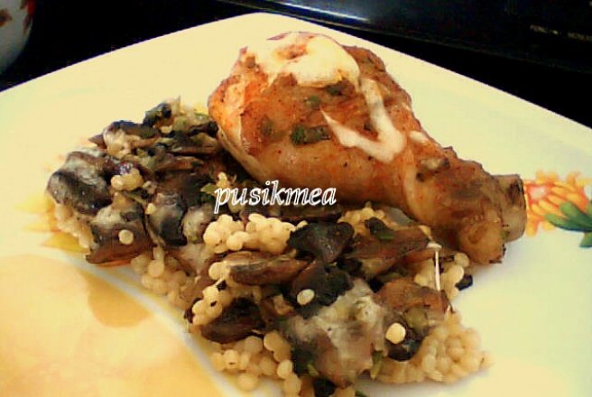 in principiu am vrut sa fac doar cus cus si pui la cuptor, insa am dat de ciuperci in frigider si nu am rezistat sa nu le strecor si pe ele :d, a iesit o nebunie