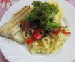 Mod de servire: se aseaza pastele in farfurie peste care se pun legumele si pestele.