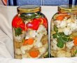 Conopida se curăță de frunze și cotor, apoi se porționează și se pune în apă rece cu puțin oțet, cca. 15 minute, pentru a se elimina eventuali locuitori, fără buletin :D, adică melci sau viermișori ;) Între timp se curăță morcovii și țelina, se taie artistic. Conopida și legumele se așează în borcane, intercalate, cu frunzele de țelină, gogoșari sau castraveți, finalizându-se cu rădăcini de hrean curățate și feliate. Pentru lichid, se pun la fiert 4000 ml de apă cu 800 ml de oțet, asezonat cu mirodeniile, după ce a dat în clocot, se adaugă fierbinte peste conopida din borcane. Borcanele se închid imediat cu capacele sterilizate sau dezinfectate cu spirt, apoi se pun la răcit lent, învelite în prosoape de bucătărie.