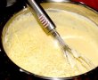 Prepararea sosului bechamel : Se lasa untul la topit la foc mic.Adaugam faina dintr-o data si amestecam energic sa nu se formeze cocoloase.Eu folosesc de obicei telul, ma descurc mai bine decat cu lingura.Adaugam treptat laptele fierbinte pana la inglobarea totala a acestuia.