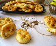 Intr-un vas se amesteca faina cu sarea si drojdia uscata. Se adauga untul/margarina, branza framantata . Se amesteca pana se obtine un aluat nisipos. Se adauga smantana, oul, galbenusul si laptele caldut in care am dizolvat o lingurita de zahar.