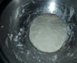 Punem faina cernuta intr-un castron. Adăugăm sarea si drojdia si amestecam. Adăugăm zaharul si apa călduță treptat. La sfarsit, adaugam uleiul. Framantam până obținem un aluat elastic.