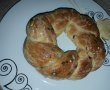 Luam o bucata de aluat, formam 2 bastonase pe care le impletim si formam covrigul.