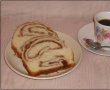 Lasam la dospit la cald 1 ora.Dupa ce isi dubleaza volumul, impartim aluatul in 2 parti egale.Intindem pe fiecare in foaie dreptunghiulara si intindem nuca amestecata cu cacao si zaharul,iar peste nuca punem bucatele rahat.Procedam la fel si cu cealalta foaie pe care intindem nuca si peste nuca punem stafidele.Rulam strans si apoi crestam cu un cutit in mijlocul ruloului.Le impletim in 2 si le punem in tava tapetata cu folie de aluminiu si ulei si lasam la crescut inca o ora.Dupa ce a trecut o ora ungem cozonacul cu ou si bagam tava cu la cuptorul incins timp de 10-15 minute.Atentie sa nu se arda!!!Dupa ce am scos cozonacul preparam glazura:amestecam zaharul cu sucul de lamaie si dupa ce s-a racit,ungem cozonacul din belsug cu glazura.
