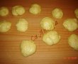 Dupa ce aluatul a crescut formam bilute egale pe care le mai lasam cateva minute la crescut pe masa de lucru, unsa cu ulei.