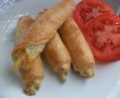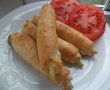 Se scoate foaia de placinta din frigider si se mai tine putin la temperatura camerei,apoi se intinde si se taie dupa preferinte,eu am taiat sa se vada putin saranghelul si in latime 1-2 cm,apoi se pune cate putina mozzarella rasa,se ruleaza si se pune in tava cu foaie de copt apoi se dau la cuptor ptr cateva minute pana se rumenesc,sunt bune ca garnitura cat si simple.