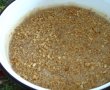 6) Dupa cele 5-7 minute stingi focul si lasi cratita in cuptor sa se mai raceasca apoi cat mai e inca calda compozitia se acopera cu putina nuca macinata si nuca tocata pe toata suprafata , se acopera cu un servet curat, umed si stors bine si se lasa sa ajunga la temperatura camerei.