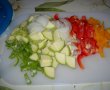 Toate legumele curatate,spalate,taiate cubulete sau julien,se calesc 5min in ulei incins,se adauga carnea taiata fasii,se adauga toate condimentele si supa;