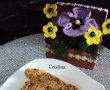 Se toarna 1/3 aluat intr-o forma de chec tapetata cu hartie de copt, pentru a se scoate mai usor. Se pun cubulete de mar (decojit) date prin faina si se continua asa pana se termina ultimul strat (cu mere). La mine au fost trei straturi de aluat si trei de mere. Va iesi un singur chec care se coace la foc mic 50 minute, sau pana este gata.Se verifica dupa 50 minute, cu un frigarui de lemn.Daca iese curat, dupa ce l-ati introdus in mijloc, inseamna ca este gata. Altfel se mai lasa in cuptor.