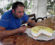 Ajutandu-ma de un cutit cu lama foarte subtire, am desprins cu grija prajitura de peretii tavii si am indepartat inelul. Am transferat Cheesecake-ul pe un platou si am servit, nu inainte de a-i scrie sotului meu ceva pe el :)) ( - Mi-l lasi asa? Nu scrii si tu un "47" pe el? :D Si-am scris! =))))) )