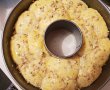 Ne ungem mainile cu putin ulei si luam bucati de aluat de aproape 80 de g. Le aplatizam si apoi adaugam putina umplutura. Le inchidem si formam din nou o bila. Le asezam intr-o tava pentru guguluf. Punem un rand de bilute si mai punem unul in mijloc. Acoperim cozonacul cu o folie si le lasam 20 de minute sa creasca. Le ungem cu galbenus de ou batut si presaram putina nuca deasupra. Introiducem tava in cuptorul preincalzit la 170 de grade, si il coacem timp de 40 - 50 de minute. Il lasam sa se raceasca aproximativ o ora, iar apoi putem sa il scoatem din forma si sa il feliem frumos.