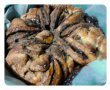 Se intinde fiecare bila si se ia o farfurie, se asaza peste blatul intins si se taie coca ramasa in exterior, se asaza blatul pe o foaie de copt, se unge cu crema de ciocolata si se repeta operatia cu celelale bucati de coca. Apoi se asaza un paharel in mijlocul blatului si se taie 12 fasii in exterior. Se iau cate doua fasii si se rasucesc spre exterior, de doua ori si se prind la capete pentru a-i da forma unor petale. Cu oul batut, se unge coca, se presara zaharul brun.