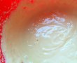 Oul, sarea, zaharul si zaharul vanilat se mixeaza. Se adauga iaurtul si esenta de vanilie si se omogenizeaza. Se incorporeaza faina si praful de copt. Trebuie sa iasa un aluat mai gros decat cel de clatite.