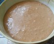 Faina o amestecam cu cacaua si praful de copt, le incorporam in compozitia de galbenusuri.