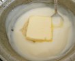 Cand s-a ingrosat, tragem crema de pe foc, adaugam untul, ciocolata alba, vanilia si le amestecam bine, pana sunt toate incorporate.