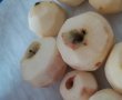 Merele se curata si se dau pe razatoarea mare, apoi se presara cu zaharul si cu scortisoara si se lasa sa se inmoaie. Intre timp se prepara aluatul.