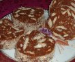 Amestecam usor, dar in acelasi timp sa se inmoaie bine biscuitii, nu trebuie sa facem terci, trebuie sa ramana cat de cat intregi.