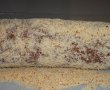 Cand este gata scot din folie si rulez pe o foaie pergament sau pe folie peste nucile macinate.