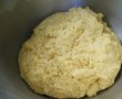 Aluatul: Laptele il incalziti pana devine caldut, untul il topiti. Drojdia o frecati cu o lingurita de zahar pana se dizolva. Cerneti faina intr-un bol. Adaugati zaharul, sarea, vanilia, coaja rasa de lamaie, amestecati. Incorporati oul batut si drojdia. Adaugati laptele treptat si framantati. La final puneti untul topit si framantati pana este bine incorporat. Acoperiti aluatul si il lasati sa dospeasca, la loc caldut.
