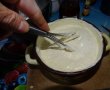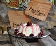 Am spalat orezul si l-am lasat la scurs. Am pus laptele cu sarea, coaja de lamaie si esenta de vanilie la fiert, cand a inceput sa fiarba am adaugat orezul, l-am lasat sa fiarba la foc mic pana ce orezul a absorbit tot laptele, apoi am lasat sa se raceasca bine. Intr-un castron am pus galbenusurile, zaharul si esenta de vanilie, apoi am asezat castronul pe baie de abur. Am amestecat continuu pana ce si-a dublat volumul . Am lasat la racit crema de galbenusuri. Smantana dulce, rece de la frigider, impreuna cu zaharul pudra le-am mixat pana am obtinut o frisca ferma, am dat-o la rece. Dupa ce toate cele 3 preparate sau racit bine le-am amestecat. Intai am mixat orezul cu crema de galbenusuri si la final am incorporat frisca. Am pus compozitia in 4 forme de silicon si le-am bagat la congelator. Dupa cateva ore am scos formele de la congelator, am scos preparatul din forme si am ornat cu ciocolata topita si dulceata de zmeura. Un deliciu,mi-a placut foarte mult.