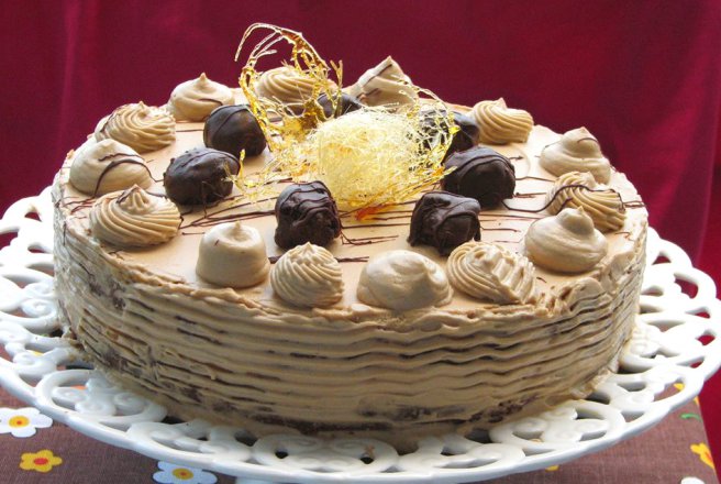 Deasupra punem crema de cafea, oprind din ea cateva linguri pentru decor.