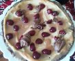Compozitia se pune intr-o forma de tort cu margini detasabile, tapetata cu hartie de copt si se pune la copt, pentru 35-40 minute maxim. Trece testul scobitorii si se scoate de la cuptor. Se lasa la racit.