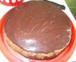 Se montează tortul. Prima foaie de blat se pune în platou, se însiropează puțin și se unge cu 1/3 din cremă. Cea de-a doua foaie se pune deasupra, se însiropează și se unge cu altă treime din cantitatea de cremă, iar apoi cea de-a treia foaie se însiropează pe partea care va fi pusă peste celelalte foi, se pune deasupra și apoi cu ultima treime din cantitatea de cremă se tapetează tortul.