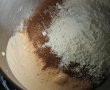 Pentru blat, mixam galbenusurile cu zaharul pana devin pufoase si se deschid la culoare. Adaugam apoi faina, cacaua, uleiul si apa(rece) in care am dizolvat cafeaua si amestecam atat cat sa se omogenizeze.