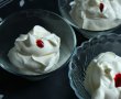 Pentru crema mixam branza cu margarina pana devine o crema fina. Separat batem frisca impreuna cu zaharul pudra. Amestecam crema de branza cu frisca si vanilia si dam la frigider pentru 20 de minute.