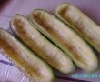 Dovleceii ii taiem in doua pe lungime.Scobim miezul si il taiem cubulete,il vom folosi pentru umplutura.