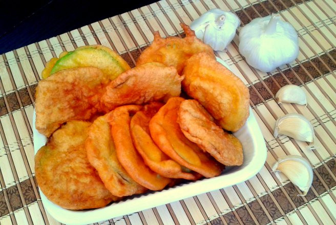 Dupa aceea, intr-un alt castron se pun ouale, faina si putina sare si se mixeaza. Se incalzeste uleiul din tigaie, se scufunda feliile de dovlecel in aluat si se pun in tigaie. Se prajesc pe ambele parti. Se scot pe o farfurie cu un prosop de bucatarie absorbant.