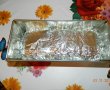 Lasam la cuptor aproximativ 40 minute la foc mic. Cu 15 minute inainte de final, inlaturam folia de aluminiu de deasupra drobului pentru a capata o culoare maronie.