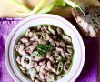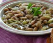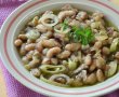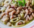 Adaugam uleiul de masline. Cand s-a incalzit uleiul, adaugam fasolea strecurata, ceapa ardeiul iute.