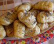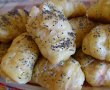 Ruloutele obtinute se pun in tava tapetata cu hartie de copt si se ung cu ou batut, apoi se presara cu mac sau susan. Se coc la foc potrivit spre mare .