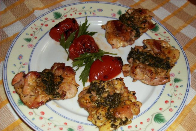 O reteta interesanta si neobisnuita. Am vazut aceasta combinatie in Germania. Stiu, putin ciudat pentru ca nemtii nu prea gatesc cu leustean, dar iata exista si persoane care-l folosesc. Noi, inainte sa vedem aceasta combinatie, leusteanul il foloseam doar pentru ciorbe. Dar ce sa vezi, combinatia de friptura - leustean e PERFECTA!!! Leusteanul ii confera carnii un gust picant, intepator. Puteti incerca combinatia aceasta cu pui, porc, vanat,...Am omis un lucru interesant, capul familiei la care am vazut aceasta combinatie era ,,vanator,, si el obisnuia sa faca vanat cu leustean verde (fam. Jurgens).