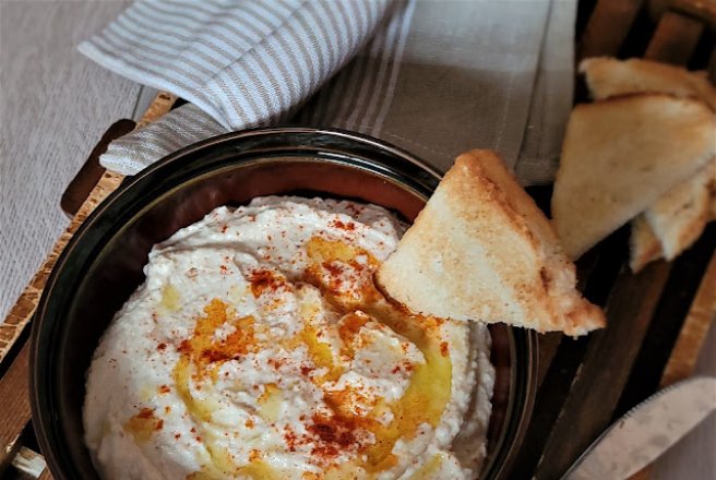 Daca nu aveti fasole gata fiarta, spalati fasolea, o puneti la inmuiat in apa rece cateva ore, apoi o puneti la fiert intr-o oala sub presiune. Scurgeti fasolea si o lasati sa se raceasca. Punem semintele de susan intr-o tigaie uscata la foc si amestecam ocazional pana semintele se rumenesc usor. Scoatem semintele intr-un castron si le lasam sa se raceasca, apoi le macinam. Taiem usturoiul felii. Punem fasolea intr-un vas inalt, adaugam susanul, sarea, piperul, usturoiul, zeama de lamaie,uleiul si cu ajutorul unui blender vertical o transformam intr-o pasta fina. Punem pasta intr-un castron,iar deasupra decoram cu boiaua si putin ulei de masline.