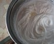 Va face spuma cat timp este pe foc, dar va disparea pe masura ce se ingroasa crema. Dupa ce s-a ingrosat, se ia de pe foc si se lasa sa se raceasca, eventual se pune intr-o oala mai mare cu apa rece si se amesteca pentru a grabi procesul de racire.