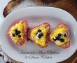 Dupa ce s-a racorit luam cu o lingurita si punem crema peste mini pavlova, iar peste crema afinele si ciocolata alba rasa.