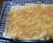 Peste ultimul strat de foi distribuim smantana si mixul de branza. Introducem vasul in cuptorul preincalzit pentru 45-50 de minute.