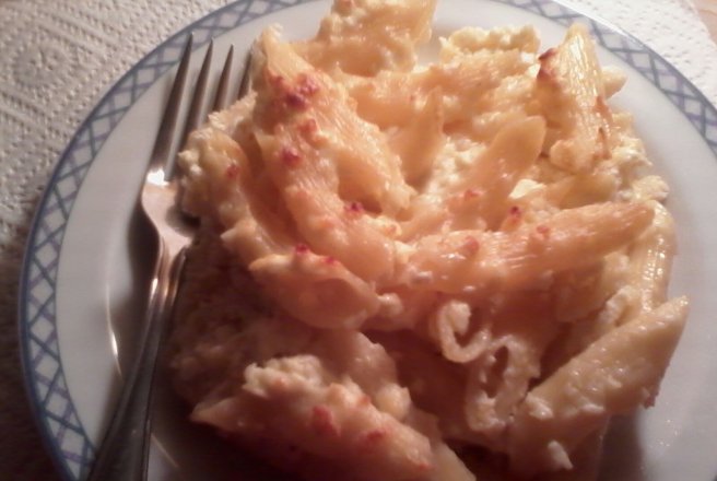 Se fierb macaroanele . Se rade branza sarata , se bat ouale. Dupa ce se scurg macaroanele fierte se adauga uleiul de masline , apoi se amesteca cu branza , ouale si smantana si zaharul vanilat. Se pun in tava si se baga la cuptorul incins la 180 grade, 35 min, pana se face un fel de crusta deasupra.