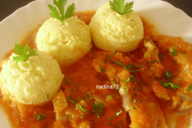 Se serveste mamaliguta calda cu carnita si sos