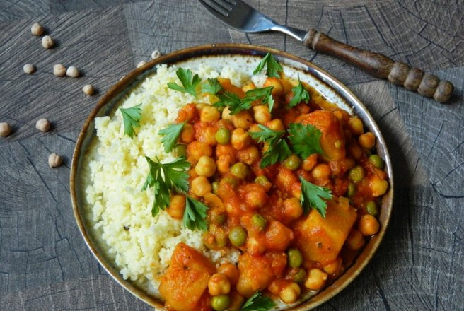 Servim mancarea cu cous-cous si patrunjel verde .