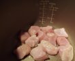 Pieptul de pui il spalam, il taiem cubulete si il asezonam cu sare si piper.