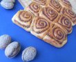 Lasam 30 minute la loc caldut , apoi ungem cu ou batut si dam la cuptorul preincalzit la 180 grade pentru 25-30 minute .