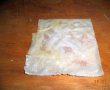 Taiem foile de orez in 4 patratele si le acoperim cu un prosop umed. Batem albusurile intr-un castron si pregatim un castron cu apa.