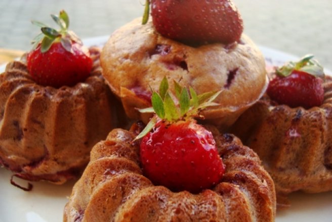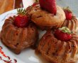 Turnam din compozitie in forme, aproape pana sus. Dam focul mare, la 200C, in primele 15min, apoi inapoi la 190C. Le tinem in cuptor pana cand trec testul scobitorii, cca 40min.