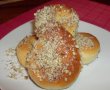 Dupa ce am scos mucenicii din cuptor, cat erau inca calzi, i-am bagat in sirop cate1 minut pe fiecare parte. I-am uns cu miere si am presarat nuca toacata. Si i-am mancat cu multa pofta.