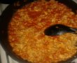 Ceapa tocata se pune la prajit in putin ulei. Cand s-a inmuiat, am adaugat carnea tocata si am lasat 5 min pe foc, amestecand mereu ca sa se desfaca. Apoi am adaugat bulionul amestecat cu o jumatate de cana de apa si ardeiul taiat bastonase. Am potrivit gustul cu condimentele si am lasat 7 min pe foc.
