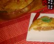 Am pregatatit un vas termorezistent, l-am uns cu unt, am adaugat un strat de cartofi, carnea, cartofi, sosul format din oua si smantana, apoi cascaval ras. Am bagat in cuptor pentru 25 min, pana s-a rumenit.