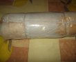 Partea a doua: dupa 2-3 zile, se scoate din frigider sulul de carne, se aseaza intr-o tava cu peretii mai inalti, stropita cu putin ulei, exact asa cum e ambalat, in hartia de copt, se pune o cana cu apa amestecata jumate cu vin alb. Se introduce in cuptorul incins la 250 grade, timp de 20 minute, apoi reducem la foc mic, 150-180 grade, inca vreo ora jumate. Intoarceti mereu sulul de pe-o parte pe alta, la 10 minute, sa nu prinda pojghita..si adaugati apa cu vin atunci cand incepe sa scada.